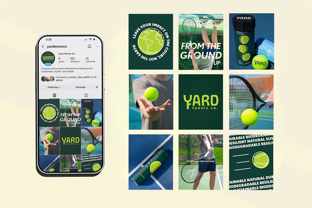 Yard Tennis Co. is a tennis equipment brand designed to provide a sustainable alternative in the world of tennis. Over 300 million tennis balls are produced each year, and they are almost always made from unsustainable, non-biodegradable materials. Yard Tennis Co. aspires to create biodegradable alternatives and easy-to-recycle packaging that reduces waste provided by tennis equipment.